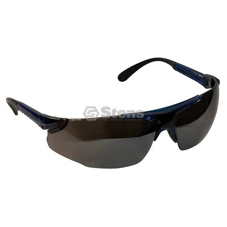 Safety Glasses Elite Series Silver Mirror Adjustable, telescoping ratchet temple Adjustable, telescoping ratchet templeSoft nose pieceSemi-frameless styleSingle sporty wraparound lensFilters 99.9% of harmful UV raysFrame Color: BlueLens Color: SilverLens Type: Mirror